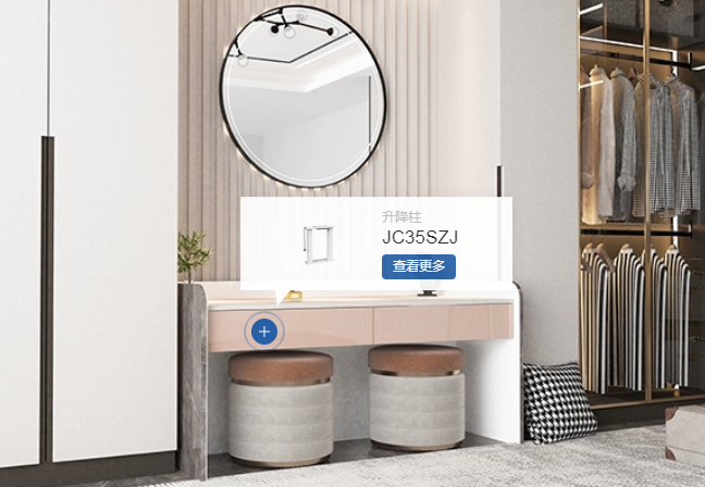 The base of this lift-up vanity table is equipped with a robust lifting column, which allows cosmetics to be easily stored within the vanity, keeping the desktop clean and tidy. With one-touch lifting, it can conveniently conceal bottles and jars, maintaining a neat space in the bedroom. Models such as the lifting column JC35SZJ are suitable for such scenarios. This model has a maximum load capacity of 500N, a maximum speed of 25mm/s, and a stroke/installation distance of 650mm/570mm. It features a simple exterior design, a compact internal structure, excellent overall performance, low noise, strong load-bearing capacity, and high stability. It is applicable to environments such as vanity tables and lift-up cabinets, and does not interfere with the quiet atmosphere of the home during operation.